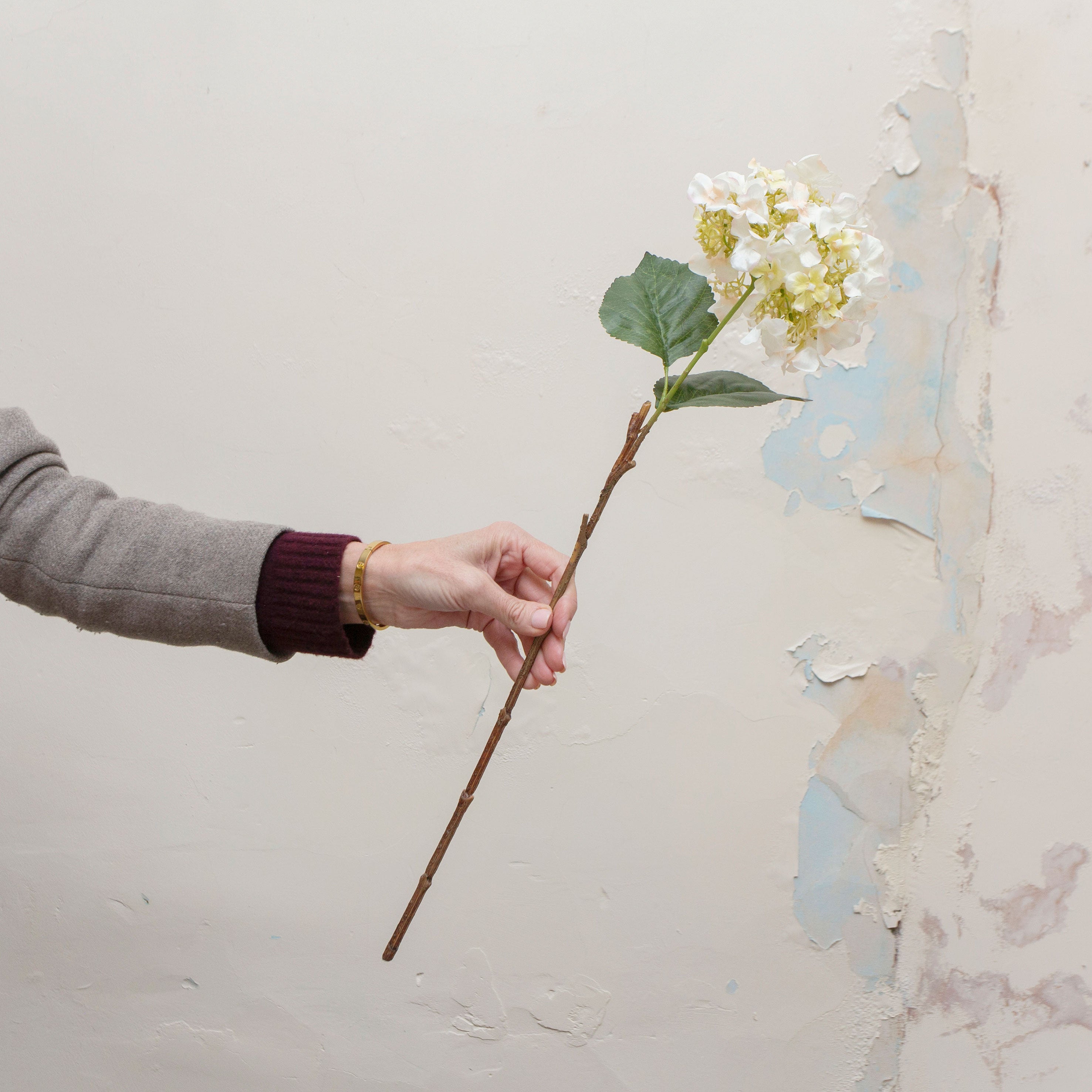 Perfect for vases, layered arrangements, or styled displays, this artificial hydrangea stem adds fullness and softness to both modern and classic interiors. The flexible stem allows for easy shaping, making it ideal for use alone or combined with other faux stems.