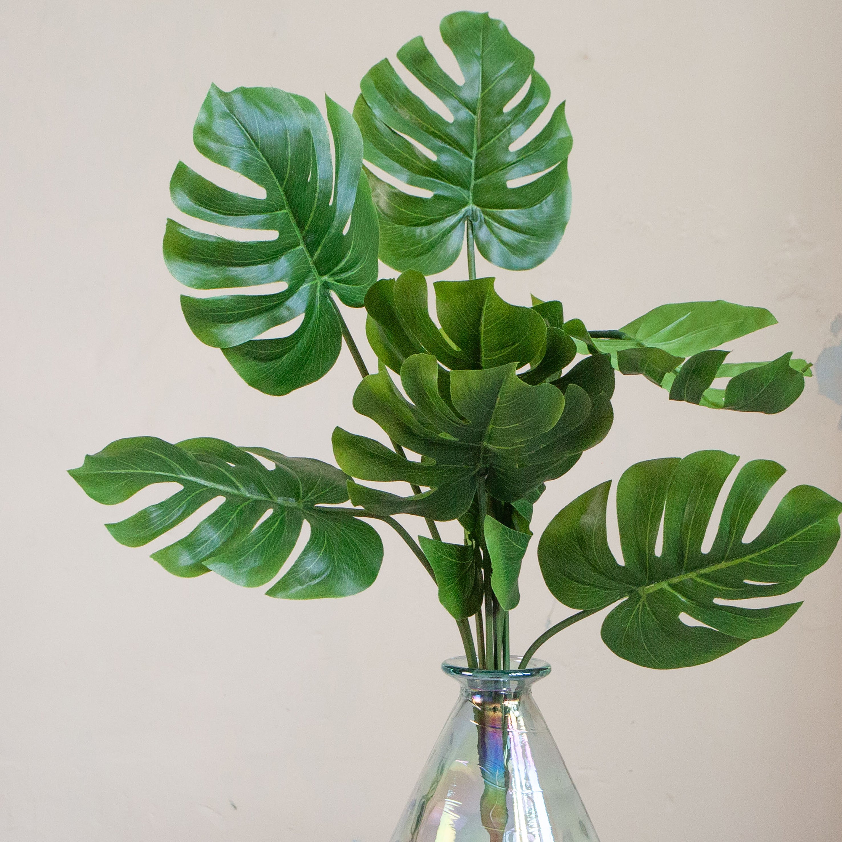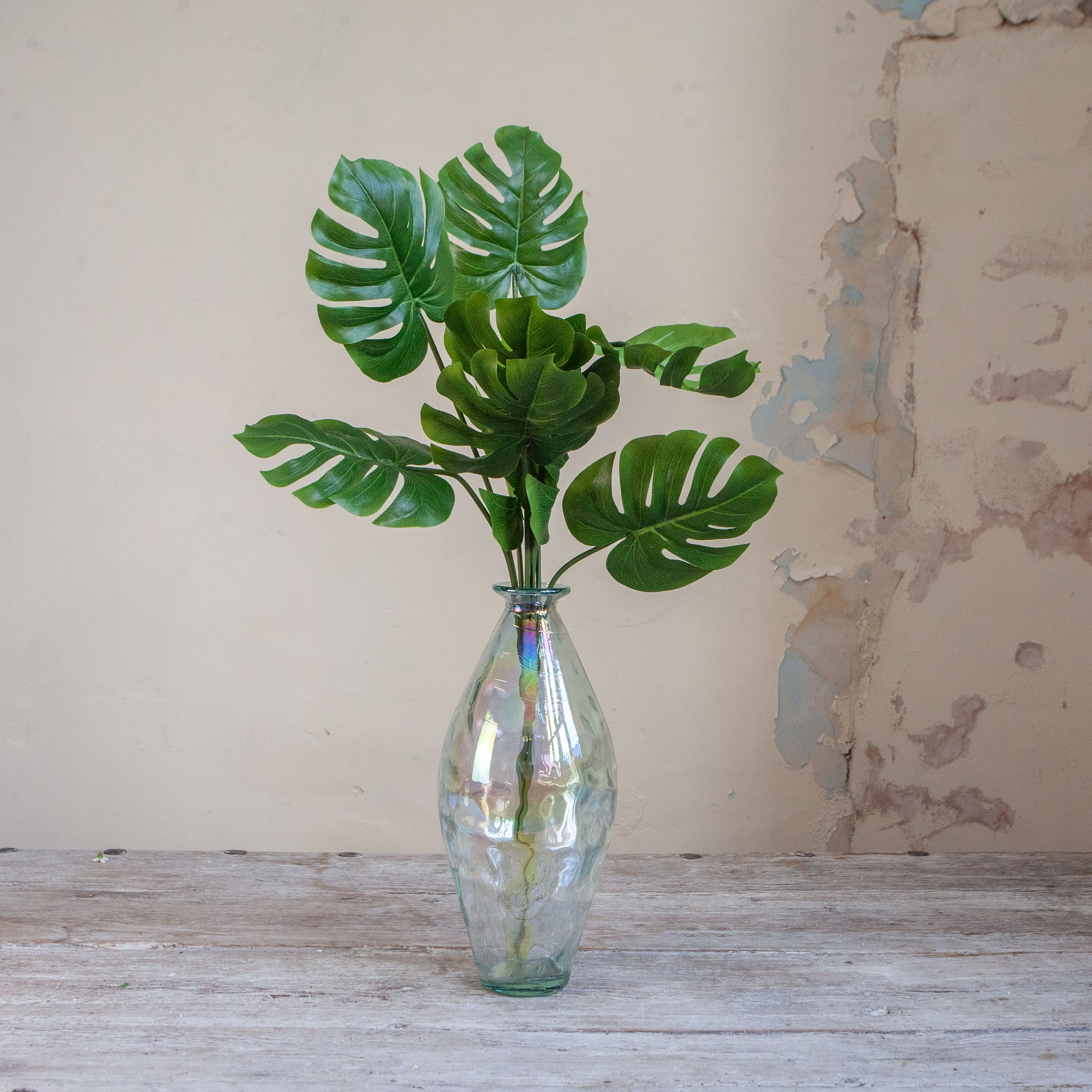 Artificial Monstera Leaves in a Lustre Bottle Vase