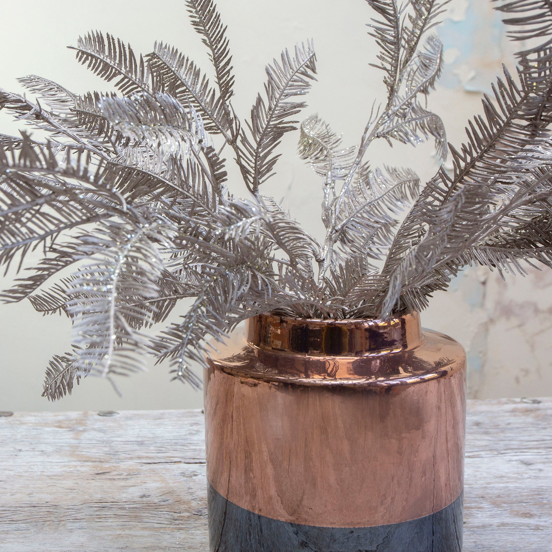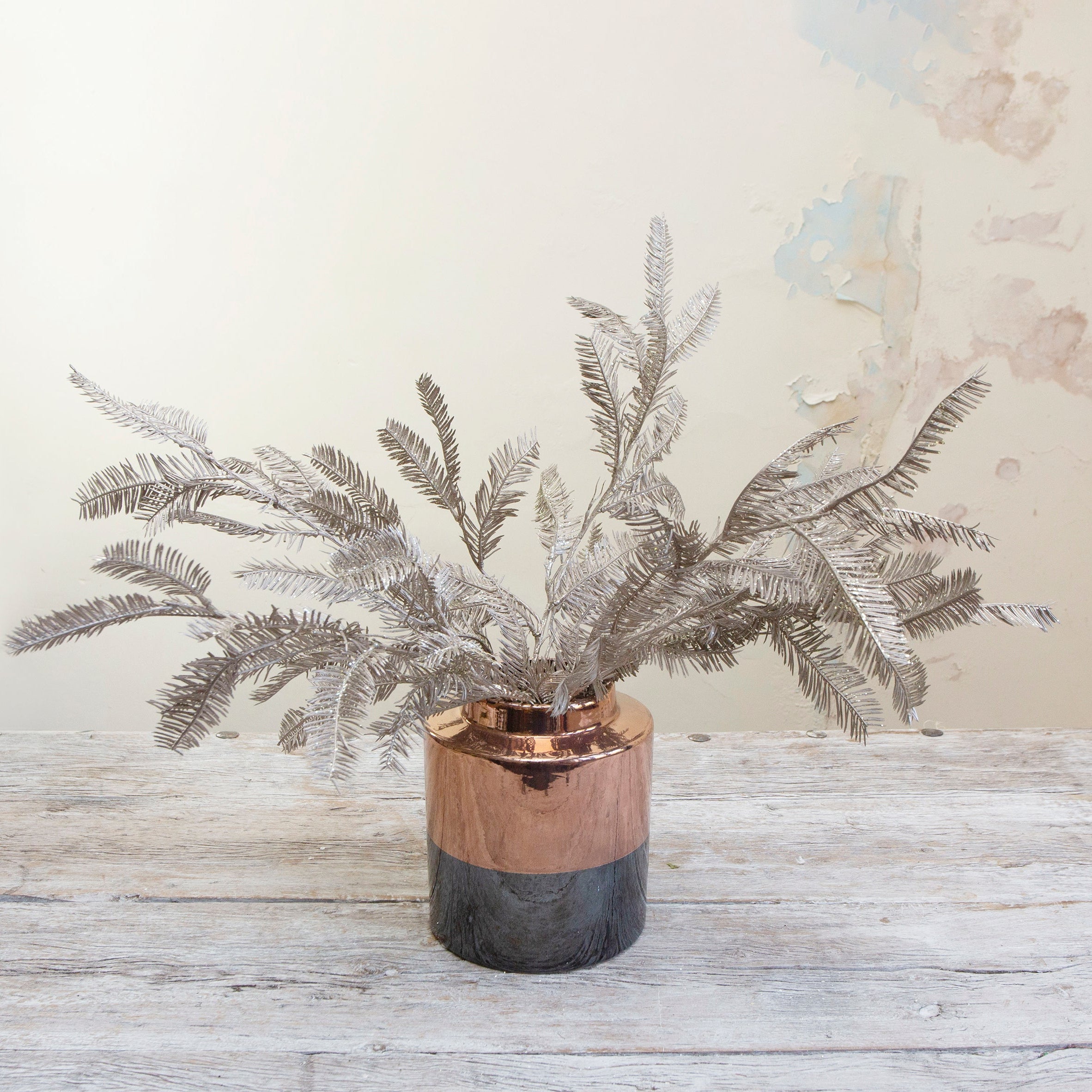 Make a statement this festive season with this champagne Christmas cedar, elegantly presented in a distinctive two-toned black and gold pot. The luminous champagne foliage offers a fresh, contemporary take on festive greenery, while the striking pot design elevates any space with modern sophistication. Perfect for creating Instagram-worthy displays, styling your entryway, or adding festive flair to living spaces, this premium faux arrangement delivers lasting impact without watering or upkeep. Invest in a piece that brings enduring beauty and seasonal charm to your home year after year.