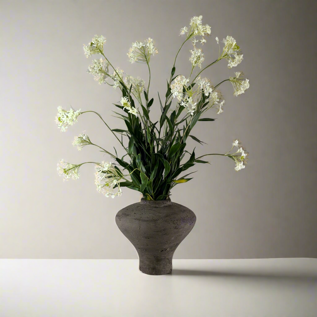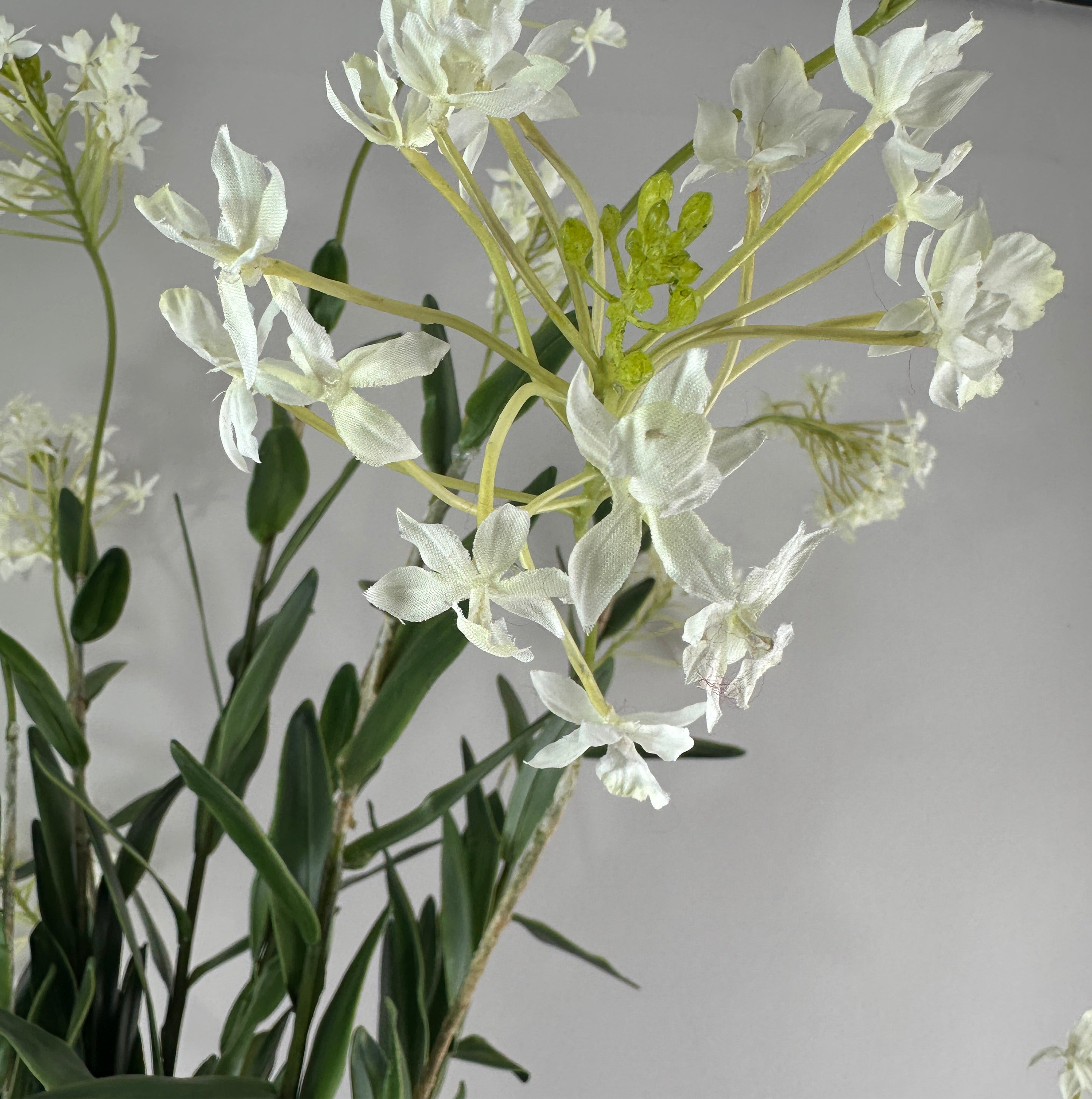 Make a bold statement with the Star Orchids in a Large Rustic Urn. This unique faux floral arrangement combines the delicate beauty of star orchids with a charming rustic urn, creating an eye-catching piece that requires no maintenance. Perfect for adding character and elegance to any space, it brings lasting style and natural appeal without the worry of wilting. Enhance your décor with this distinctive, one-of-a-kind centerpiece.