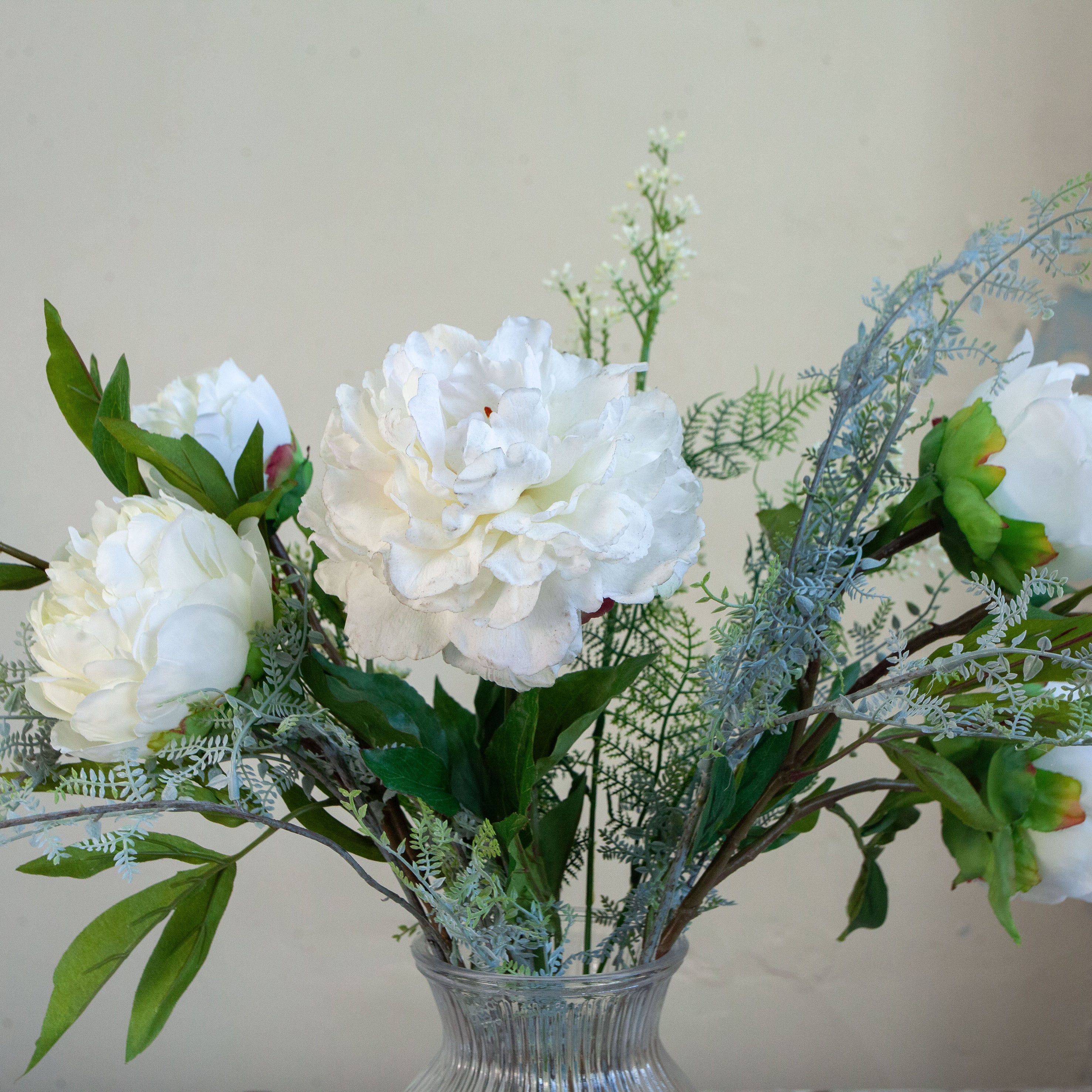 Artificial Peony, Rose, Astilbe and Foliage in a Contemporary Two Toned Pot