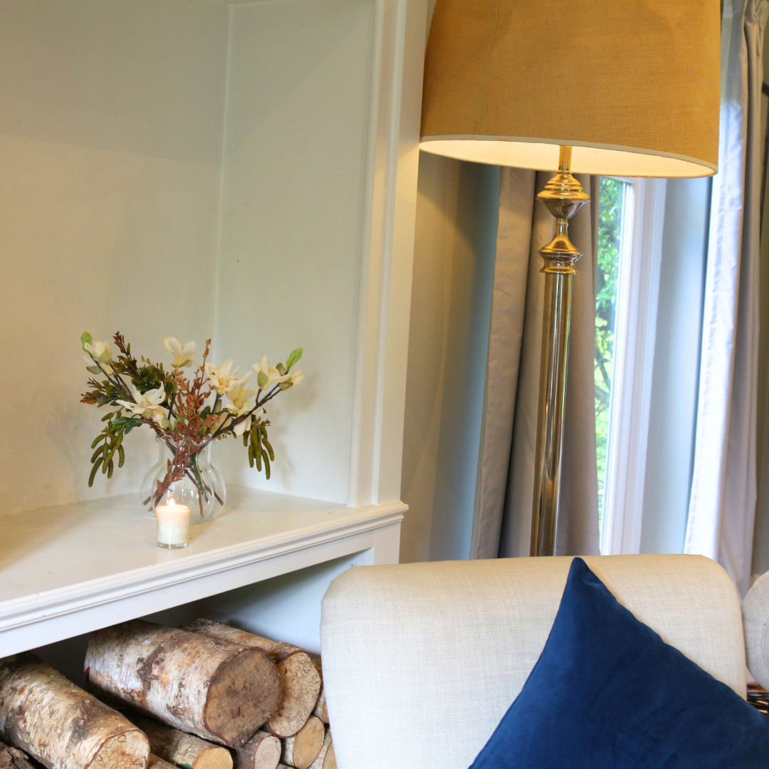 Artificial Magnolia and Branches in an Ocean Blue Vase