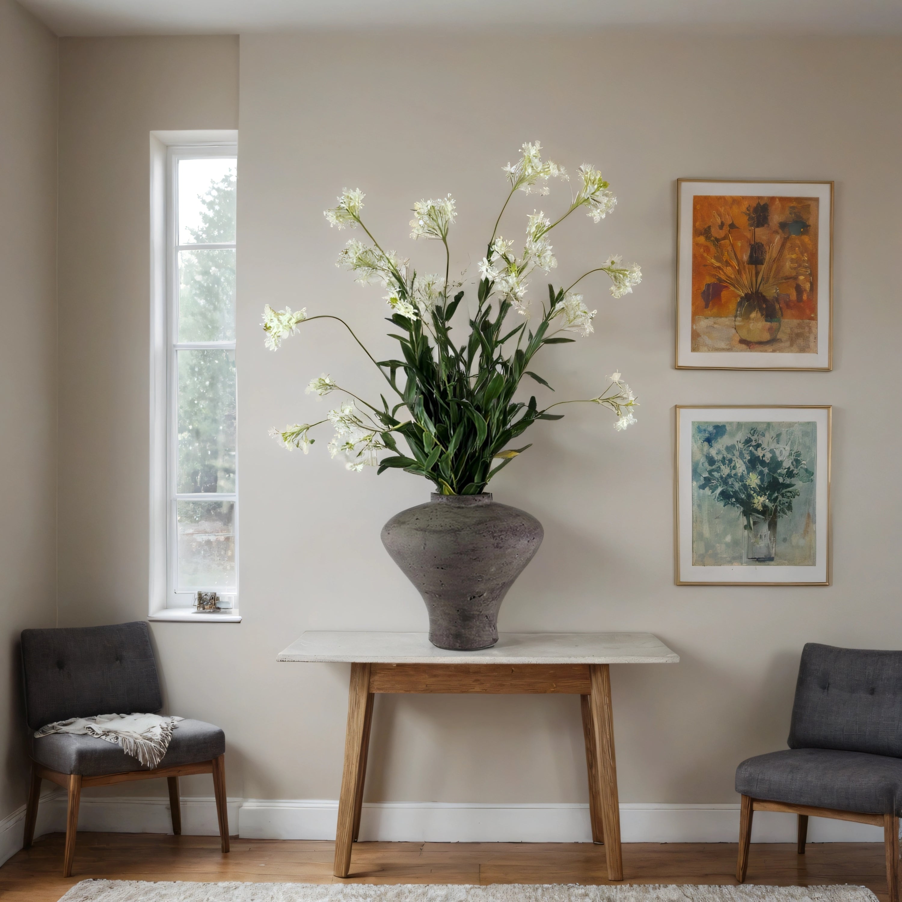Artificial Amaryllis, Acacia, and Pinecones in a Vase