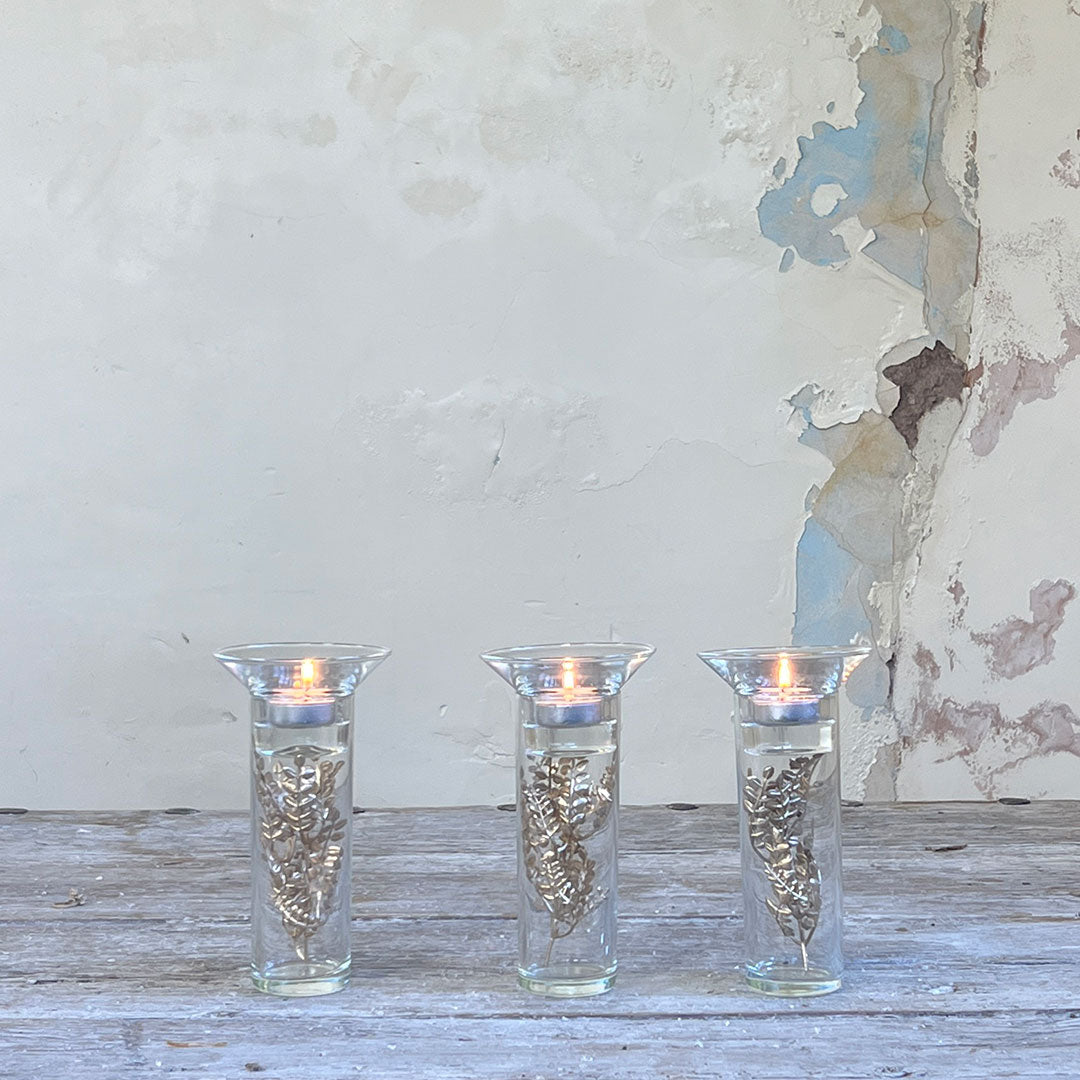 Artificial Mimosa Stem in a Glass Cylinder Candle Holder, Set of 3 - Gold