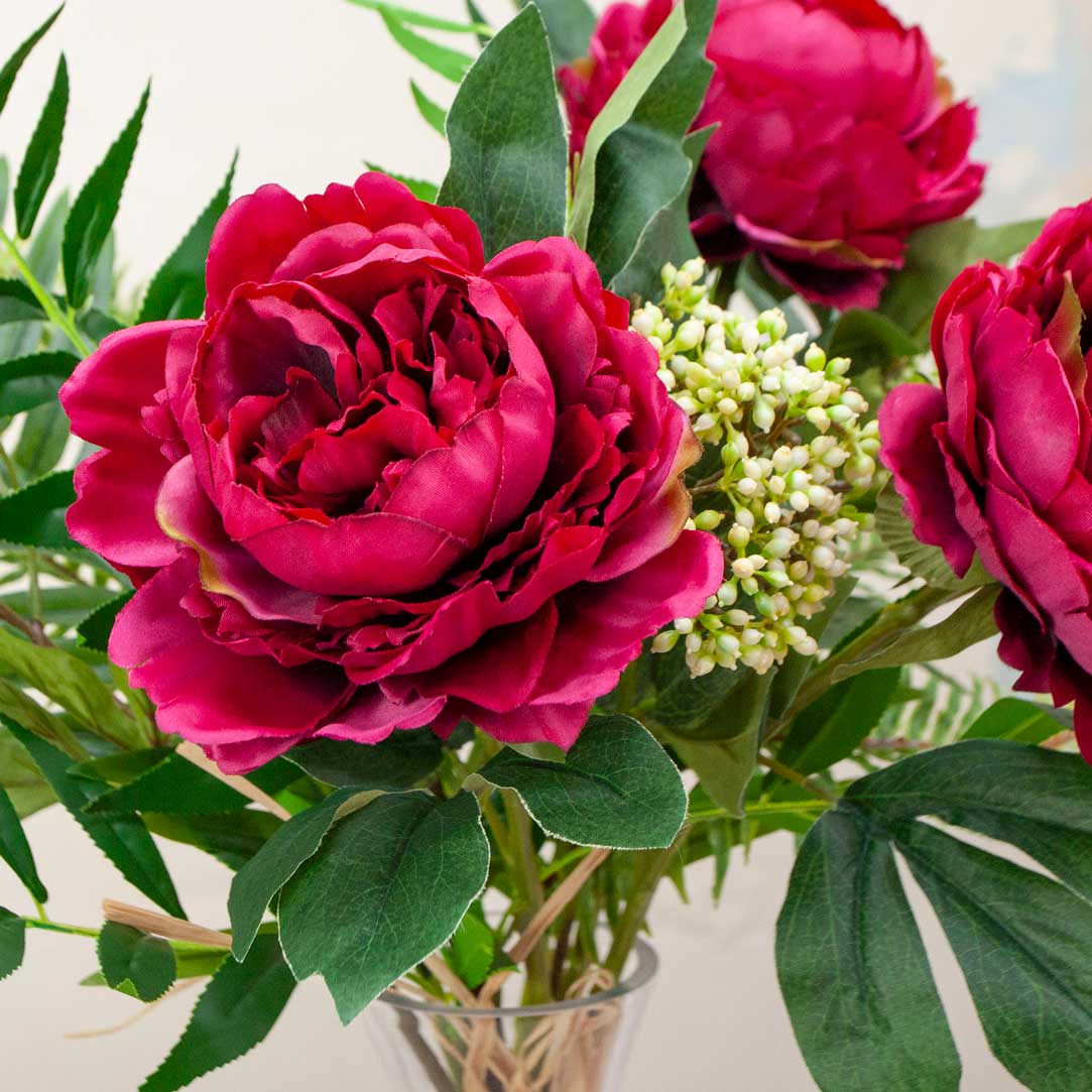 Artificial Peonies in a Decanter Vase - Magenta