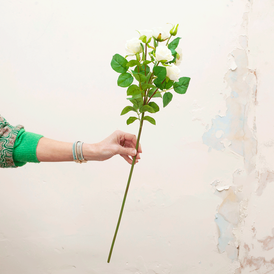 Artificial Rose Spray Stem with Leaves - Bridal White