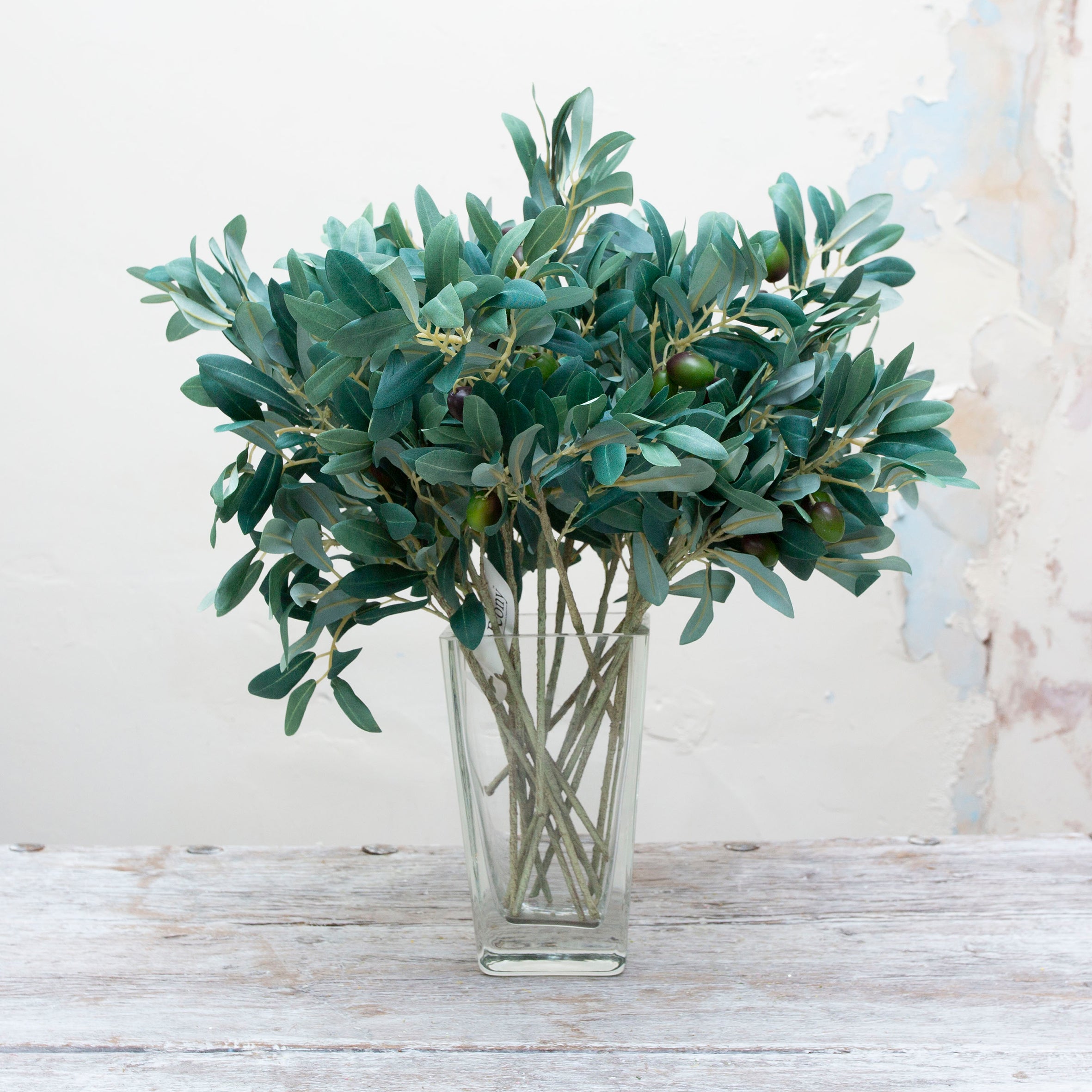 Add a little of the Mediterranean into your flower arrangement with this beautiful olive branch. With sage green leaves and olives.