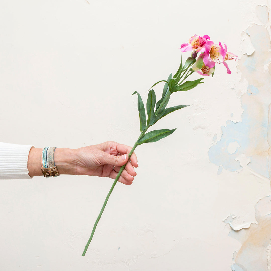 Artificial Alstroemeria Stem with Leaves - Pink