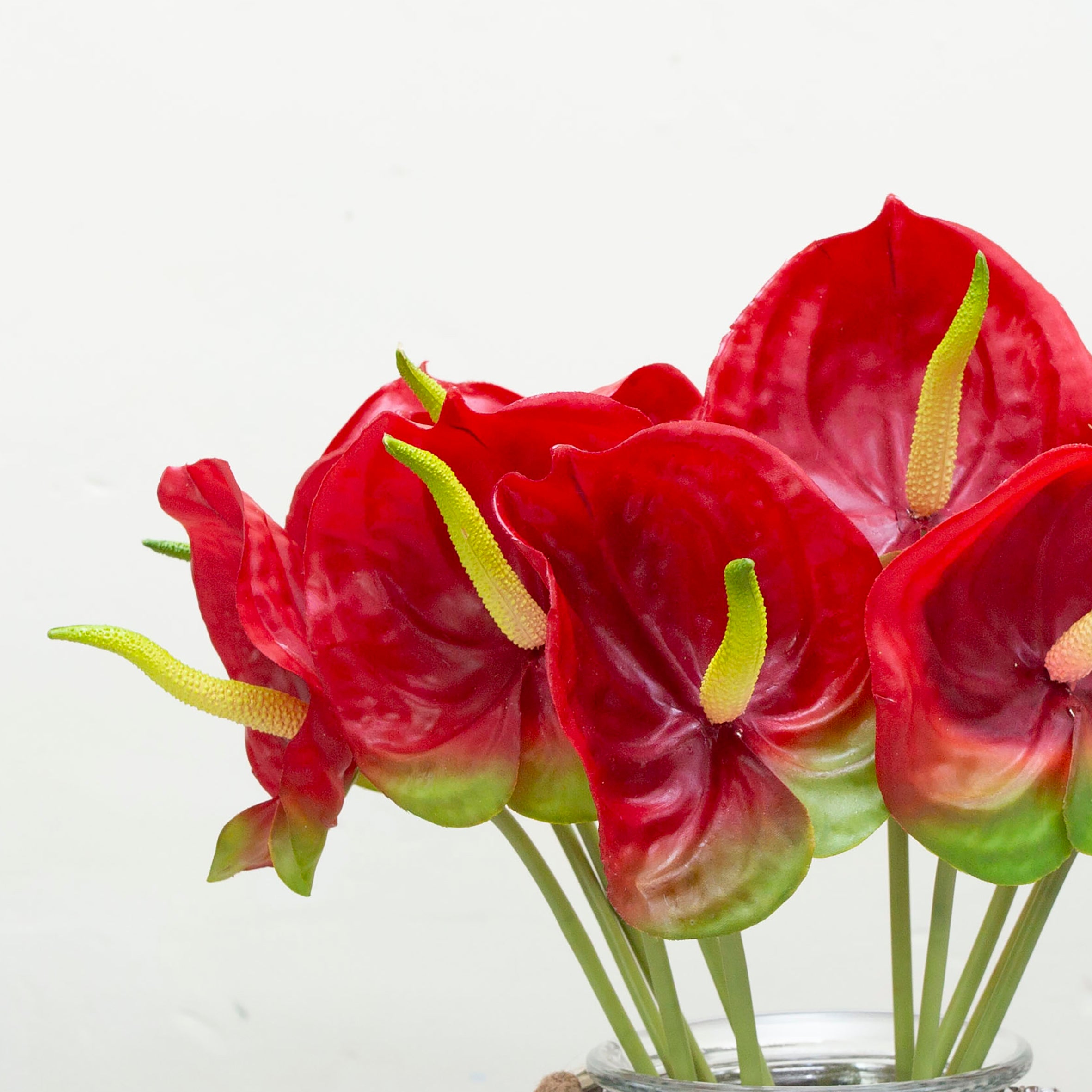 A real touch anthurium tropical flower in a beautiful red with a hint of green.