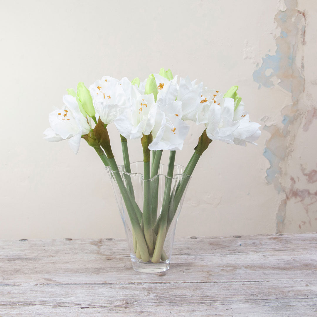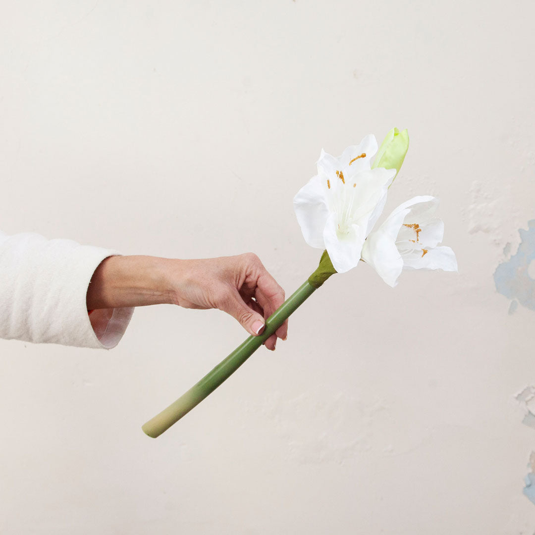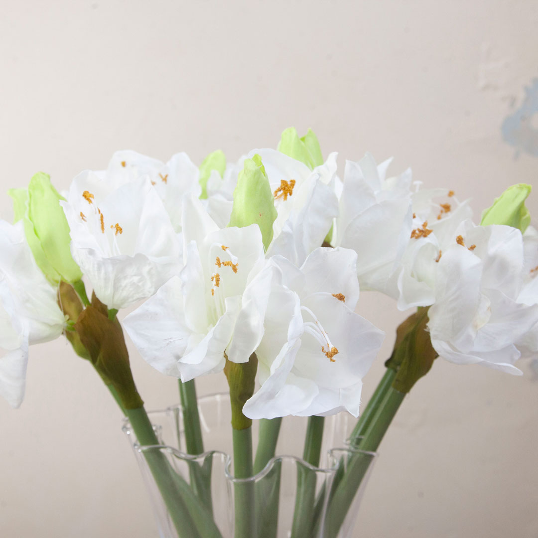 Artificial Amaryllis with Flowering Heads and Buds - White